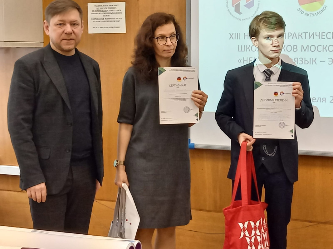19 апреля 2024 года РОО «Ассоциация преподавателей немецкого языка Московской области» (РОО «АПНЯМО») при поддержке Министерства образования Московской области, факультета романо-германских языков Государственного университета просвещения, Международного союза немецкой культуры, Гёте-Института в Москве провела XIII региональную научно-практическую конференцию школьников Московской области «Немецкий язык – это актуально!».